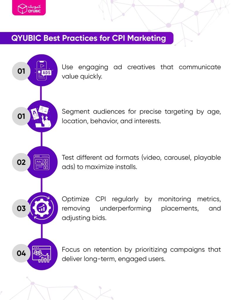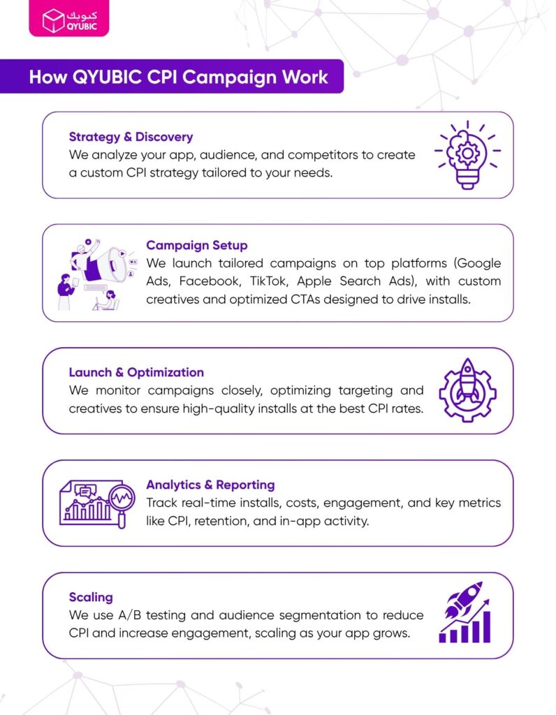 At QYUBIC, we don’t just drive installs; we ensure they’re from engaged, high-quality users. With our CPI marketing campaigns, you only pay for real app installs from users likely to convert and stay. Our data-driven approach ensures your budget is spent on installs that matter.