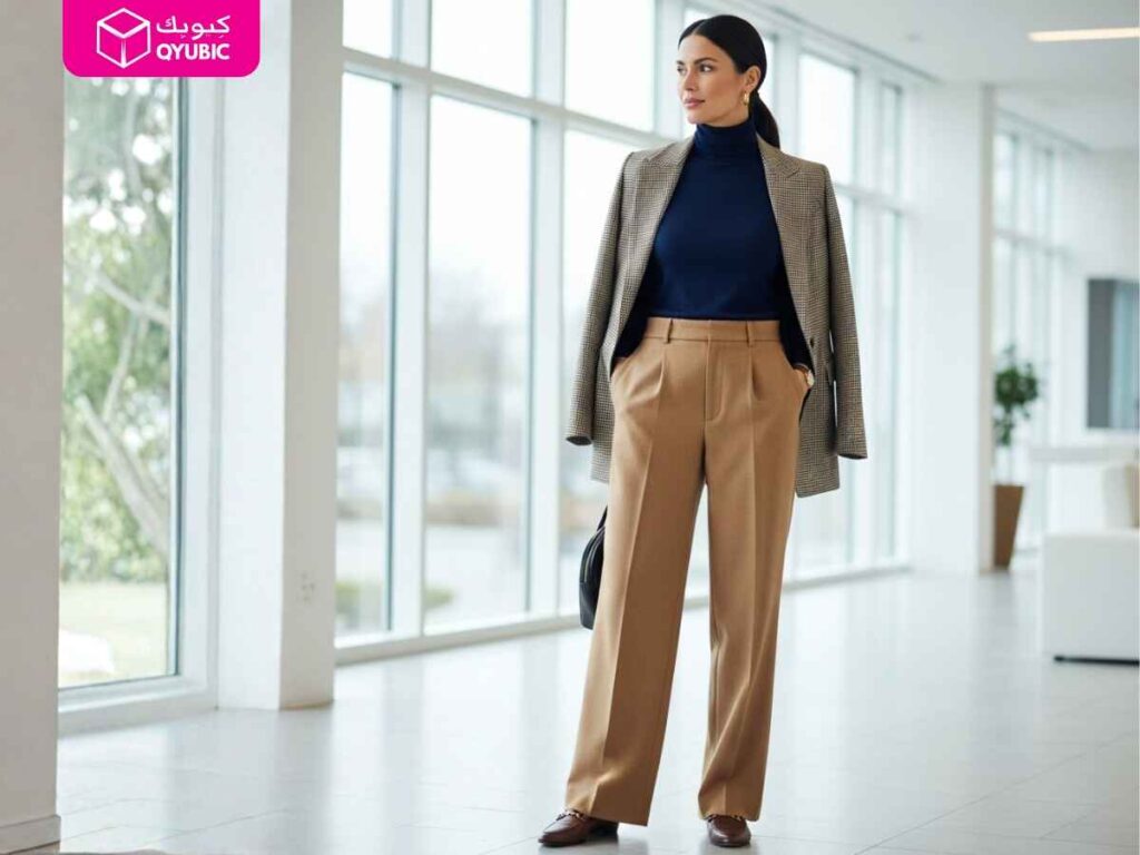 | Turtleneck | Tailored trousers, wide-leg jeans | Casual-Formal |