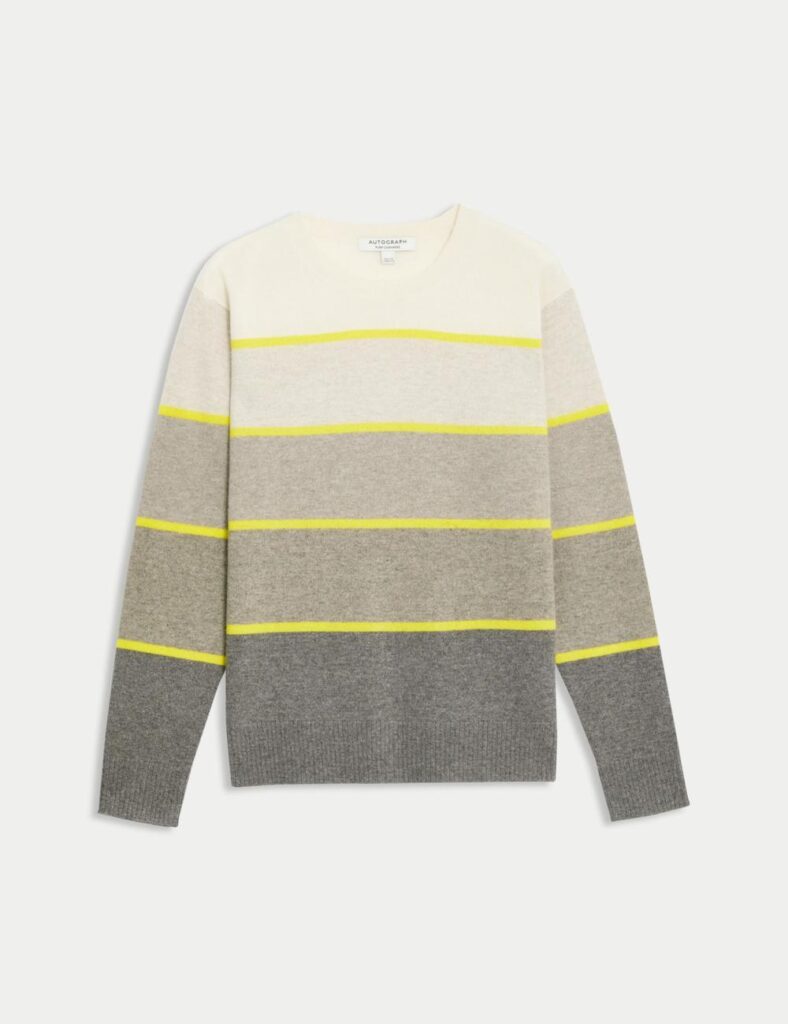 Pick 2 :Pure Cashmere Striped Crew Neck Jumper – Soft, Modern, and Effortlessly Stylish