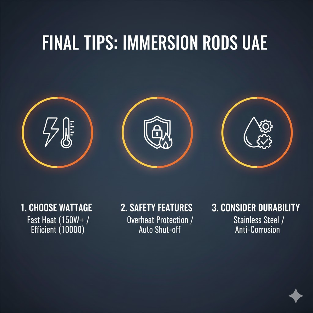 In conclusion, immersion rods are a cost-effective and efficient solution for heating water during the chilly UAE winters. They offer quick heating, portability, and safety features, making them ideal for both small and large households. I’ve personally found that using an immersion rod saves time and energy, especially during the colder months. Choose the right winter bath heater for your needs and enjoy a warm, relaxing bath. Click the affiliate links to purchase the best immersion rods available in the UAE today! Get the best deals on immersion rods and more with verified discounts on QYUBIC!