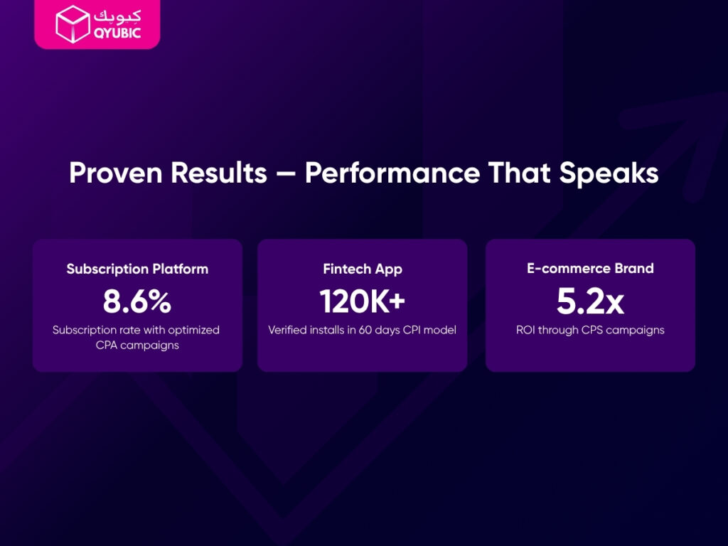 Yes! With CPI, CPA, and CPS models, you only pay for verified installs, actions, or sales, ensuring every dollar spent delivers measurable value. - Who can benefit from QYUBIC MEDIA’s performance marketing campaigns?