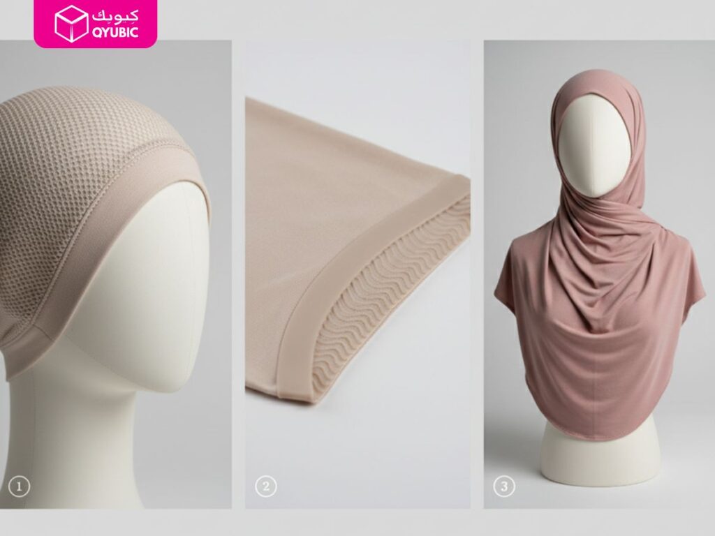 - Match undercap fabric to hijab material (cotton undercap with chiffon hijab, jersey with jersey hijab).