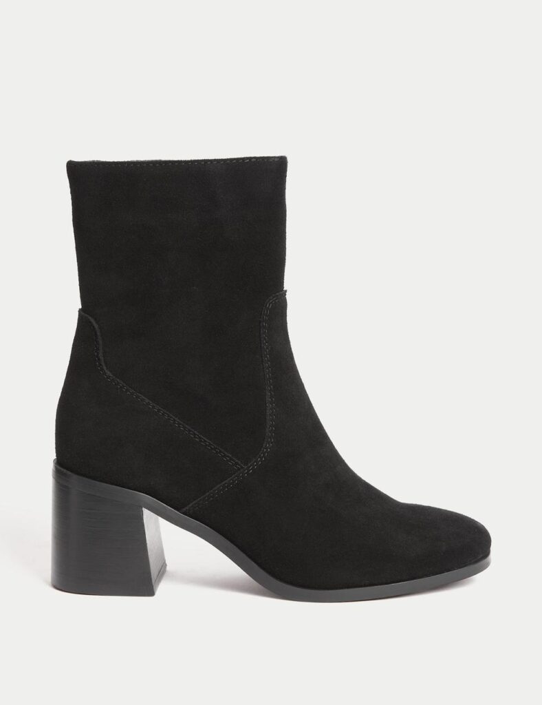 3.Suede Block Heel Ankle Boots: These Suede Block Heel Ankle Boots from M&S are perfect for any winter party look. The mid-height block heel adds comfort while providing elegance and sophistication.