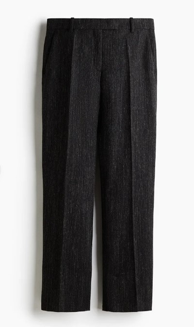 3.Tailored Wool-Blend Trousers: These H&M Tailored Wool-Blend Trousers in grey offer a mid-rise waist and structured silhouette, perfect for winter business meetings. The wool blend fabric offers comfort without compromising on sophistication.
